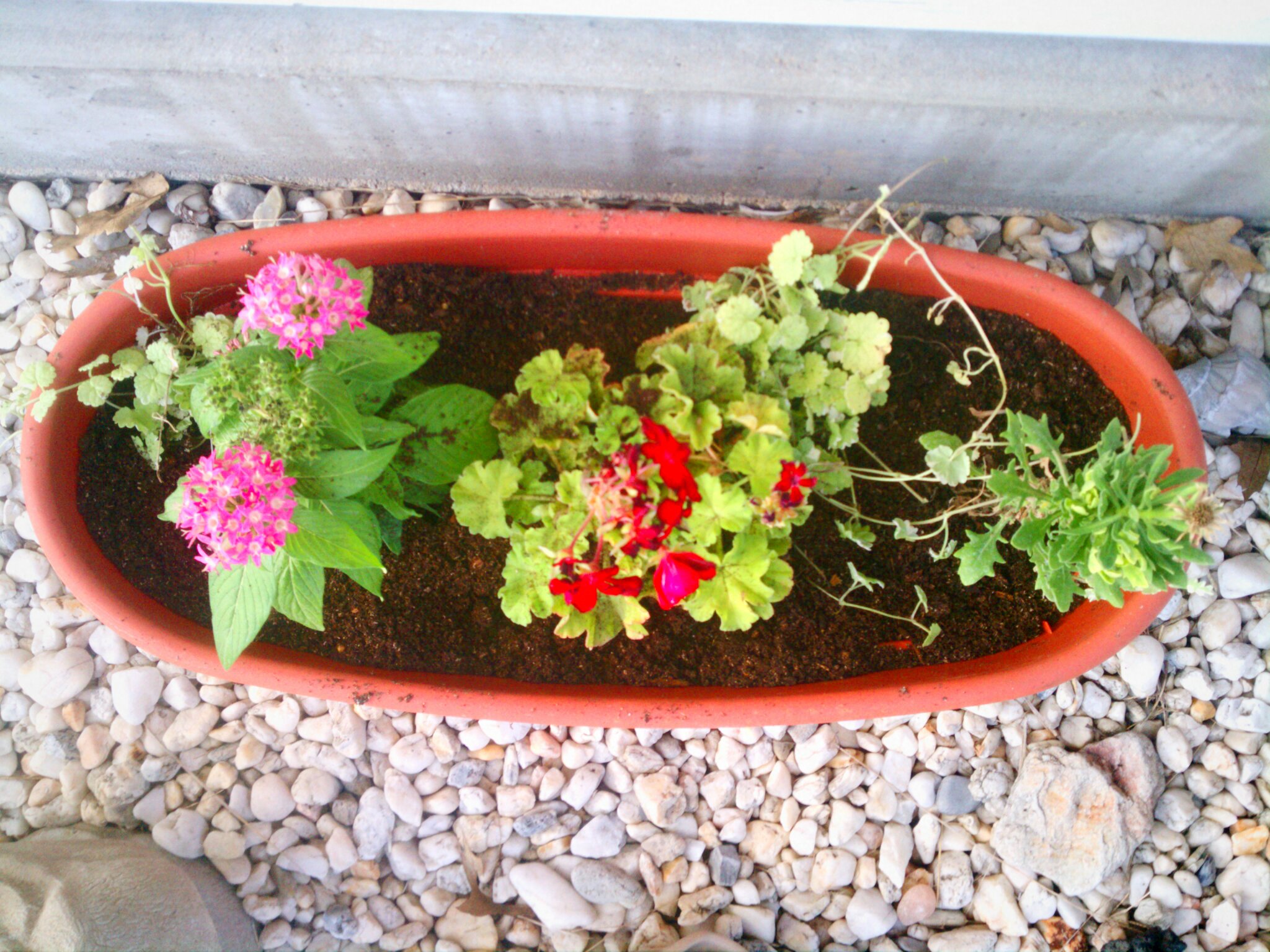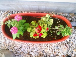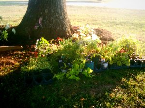 all those planters are full. and my sweet aunt has taken it upon herself to water them twice a day. i think we got a little over half planted. here is what we have left.