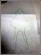 i was trying to find a stencil of a girl i painted last year, i came across some wax paper that i had been using to press a leaf in a book last fall. i used the wax paper, traced my lady. cut her out and there was my stencil.
