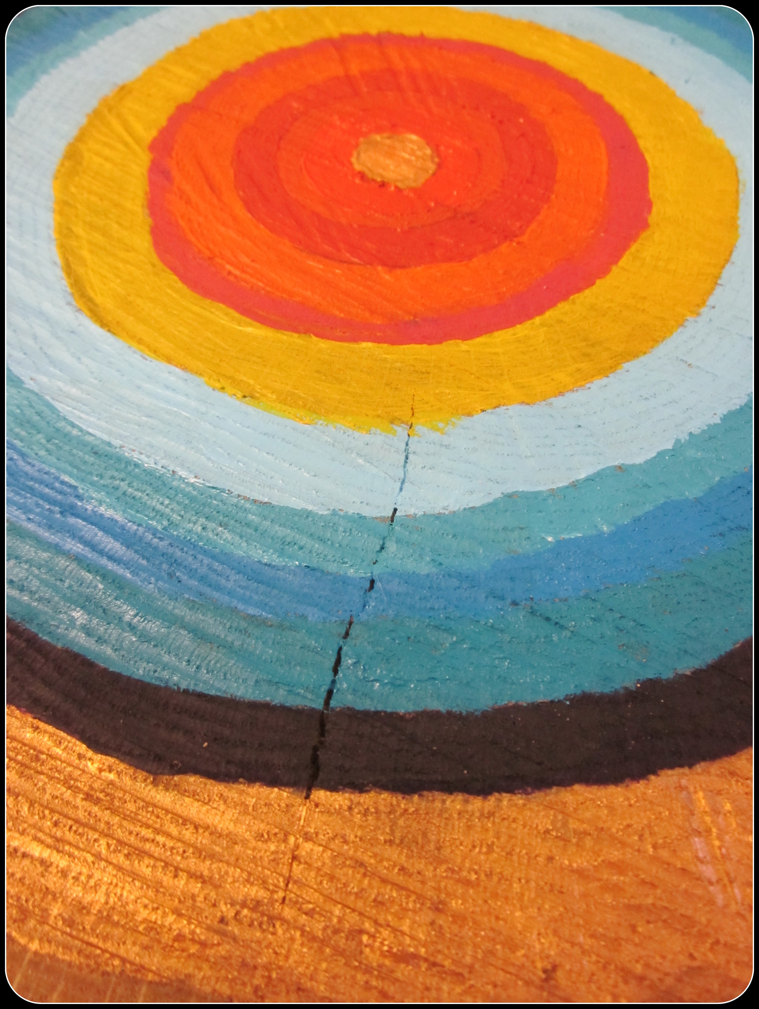 lessons learned? next time fill the outer circle in completely with paint and add a layer for each circle after that. by starting the project on sunday, i didn’t allow time for this (who am i kidding? these things are almost always done on sunday).