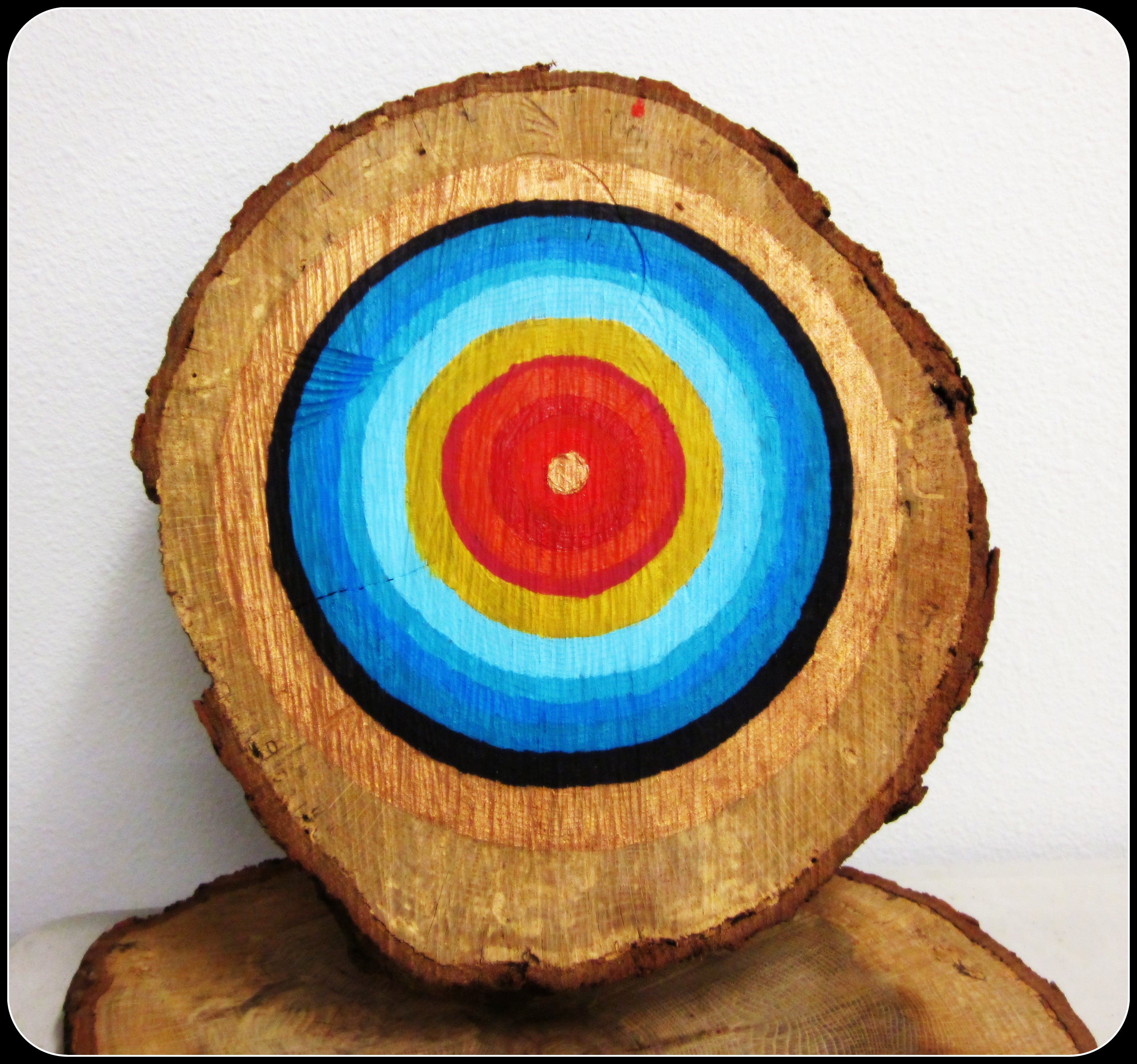 this weekend i saw a post on a friend’s pinterest of painted wood rounds. the rounds were several inches thick and appear to be maybe four inches wide. they had smooth sides and had been sanded smooth on the top. they look to be finished with several layers of glaze.