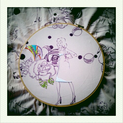 i had plenty of fabric left, so i stretched 5 more and got to work. and they have sat uncompleted since then. it has been almost two years. fast forward to last weekend. i decided the girls could use a different twist, so i busted out the embroidery hoop and got to work. little did i realize just how much work i had to do. here is what we started with: