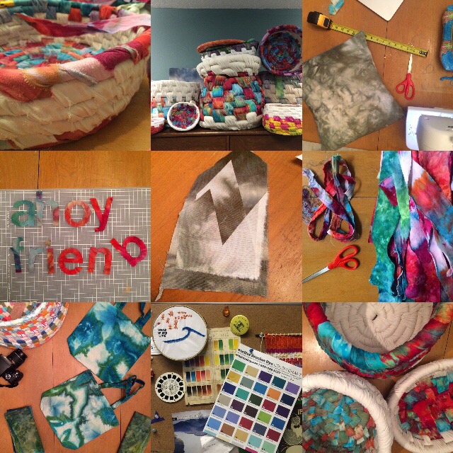 in preparation for the application, i had a binge crafting weekend in march and worked 30+ hours dying, ripping and wrapping fabric.